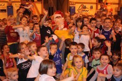 Le BELLERIVE Basket club, a été chargé d’organiser la fête de Noël du Baby Basket départemental par le comité de l’allier. Plus de quatre vingt dix têtes blondes, brunes, châtains, rousses étaient présentes, pour montrer leurs talents, de passeurs, dribbleurs, de shooteurs et surtout de l’esprit d’équipe. Tous ont participé avec beaucoup d’enthousiasme et de joie à tous les ateliers mis en place, ils étaient fiers que les équipes portent le nom de leurs idoles. Après avoir évolué aux différents ateliers, une surprise leurs a été faite, le comité départemental a demandé au Père Noël de venir récompenser toutes ces petites frimousses et lui avait commandé des cadeaux ayant rapport au basket, de plus un goûter leur ont été offert. Tous sont repartis heureux de cette après-midi.