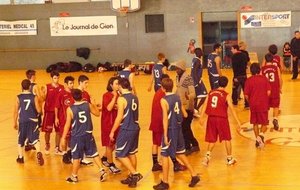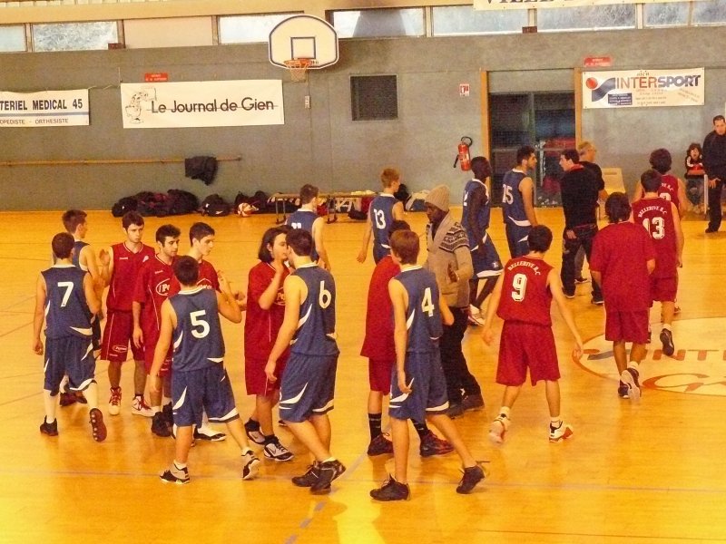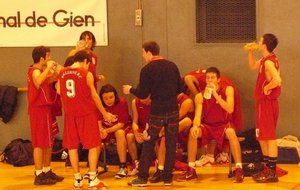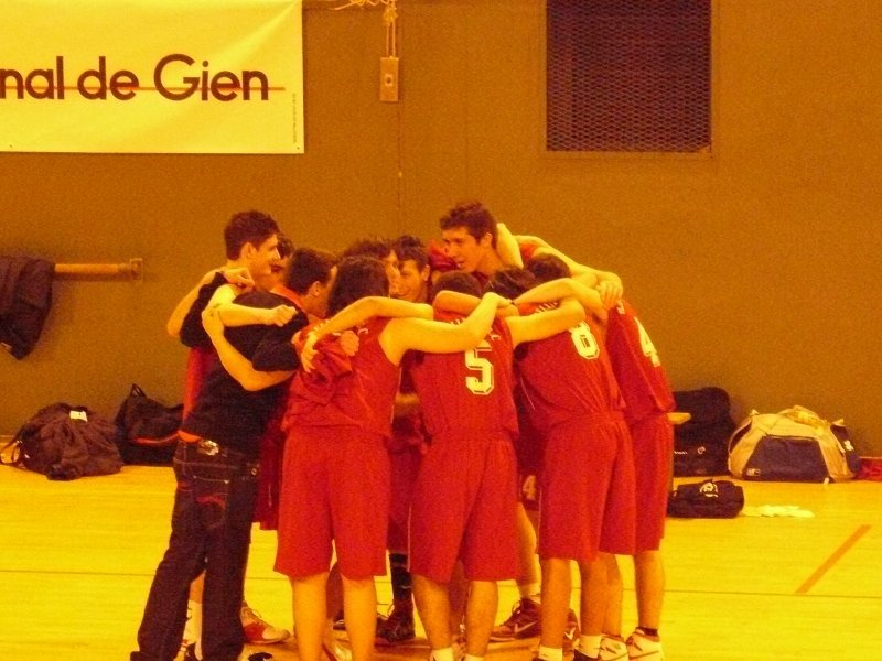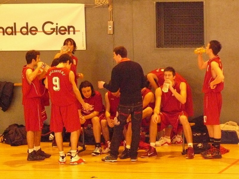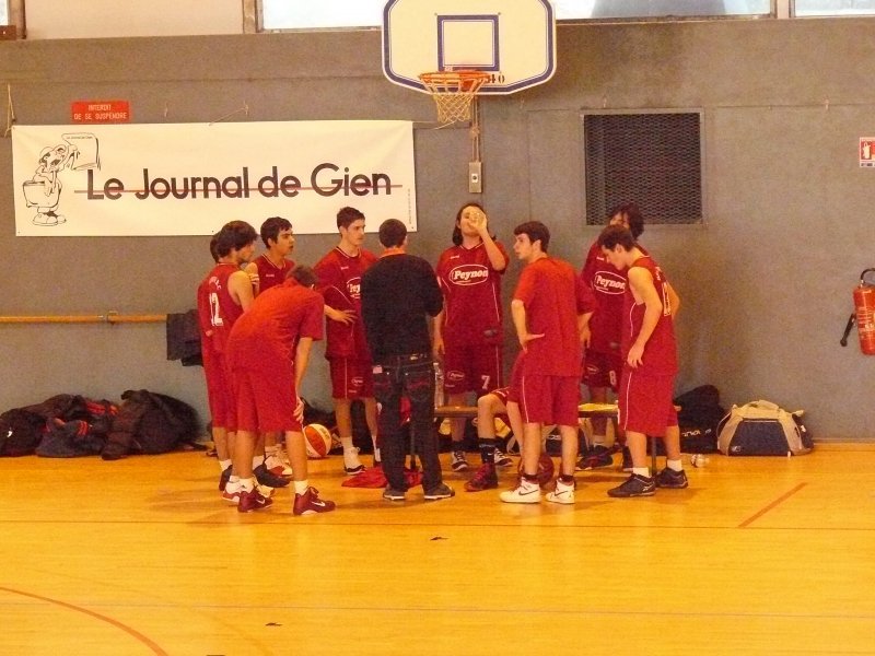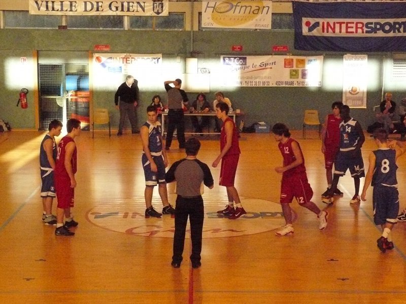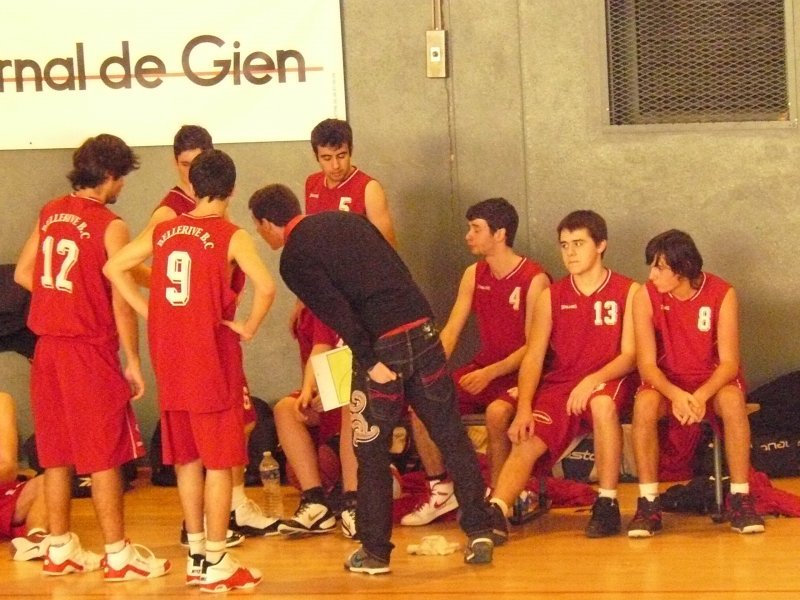 Le BBC ne c'est pas fait piquer par l'Abeille de Gien Pour leur entrée dans le cadre de la Coupe de France, nos cadets ont dû se déplacer à Gien (Loiret). Un long déplacement bien négocié par l'équipe........ En effet, dans une très belle salle, avec une très bonne ambiance et surtout très particulière (présentation des équipes, tambours, trompettes) nos rouges et blancs démarraient le match de la plus belle des manières en infligeant un 7-0 d'entrée sur un panier à 8m50 de M.Bonnet. Le temps mort adverse leur permis de revenir et même de passer devant une équipe bellerivoise qui commençait doucement à douter..(14-13 à la 9e). Suite à cela, le coach bellerivois pris aussi un temps mort pour remettre son équipe en confiance, ce fut chose faîte, les 2 équipes terminaient le 1er QT à 18 partout. Le 2e QT démarrait parfaitement avec un 3 pts de L.Pelletier en contre attaque. Les 2 équipes se rendaient du coup pour coup ! Mais les locaux commençaient à craquer en cette fin de 1ere mi temps, les Bellerivois devaient encore plus provoquer les fautes à l'intérieur par l'intermédiaire de D.Blanc qui converti ses lancers-francs. Les acteurs de cette rencontre rentrent aux vestiaires sur le score de 36-41 en faveur du BBC. Le début de ce 3e QT fut marqué par un net réveil de Gien et nos Bellerivois encaissèrent un 12-2 permettant aux locaux de mener 48-43 à la 26e.. Temps mort immédiatement pris par le coach bellerivois, les troupes doivent se réveiller très vite avant de sombrer. Ce fut chose faite ! Le BBC infligeait un 12-5 à Gien mais perdait ce QT qui se terminait sur le score de 53-55 toujours en faveur des Bellerivois. L'ultime quart temps est un vrai combat comme durant l'e nsemble du match, les 2 équipes se rendaient coup pour coup ! Mais le match bascula lorsque le BBC, menant 66-67, le numéro 6 adverse C.Pascalin auteur de 36 pts ce soir là effectuait sa 5ème faute grâce à l'insistance du jeu Bellerivois à l'intérieur.. Nos rouges et blancs déroulaient leur jeu et concrétisaient leurs contres attaques par l'intermédiaire de PL.Pasquier, le BBC infligea un 12-0 fatal. Victoire 66-79 pour nos cadets, rendez vous en 32e.. Un grand merci au club de Gien qui nous a parfaitement accueillis, aux 2 arbitres (Mrs Casanova et Broye), ainsi qu'à l'ensemble des accompagnateurs de notre équipe qui nous ont permis de préparer ce match dans les meilleures conditions possibles. Marqueurs : PASQUIER (16), CHAPUT (0), BARBUT (0), ESTEBANEZ (0), T.BONNET (16), CEAUX (2), FAYET (1), M.BONNET (15), PELLETIER (3), BLANC (26). Coach : Gaëtan ETIENNE. Absents : Samuel MICHELET, Ilias GUERRAOUI, Johan SABATIER.