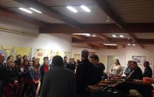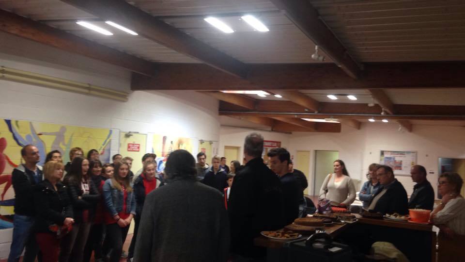 Ce samedi 15, nous avons accueilli les allemands aux alentours de 18h au COSEC. Ceux-ci ont pu écouter le discours d'accueil de notre président avant de partager un buffet préparé par les familles françaises. La soirée s'est terminée pour certains avec la victoire des SM1 qui ont validé leur maintien, tandis que d'autres plus fatigués étaient déjà rentrés en famille.