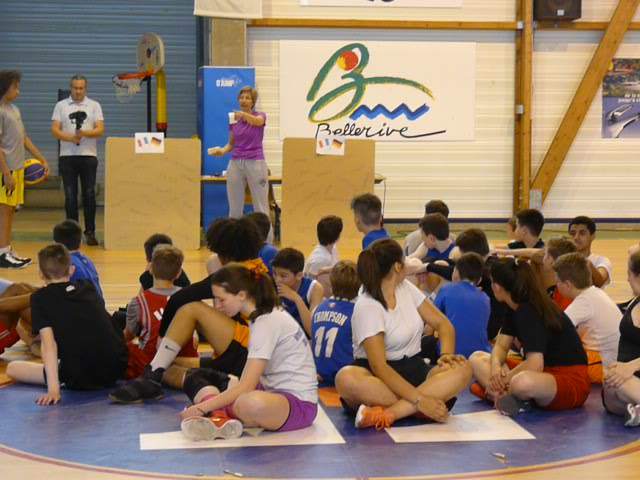 Ce matin les jeunes des clubs de la JAV et du BBC pour la France et de Kirchheim et Ziegelhausen pour l'allemagne ont pu faire des jeux alliant la pratique du basket et la pratique du français et de l'allemand, jeux imaginés par Caroline DUFOUR, dirigeante à la JAV.